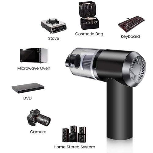 2 in 1 Wireless Car Vacuum Cleaner with LED Light.Portable Mini Wet/Dry Vacuum for Car Interior and Home Cleaning.Vacuum and blowing function.Powerful SuctionLightweight and cordless design.Includes Flat Nozzle and Brush Nozzle for cleaning keyboards, computers, electronic equipment, office desks, cars, pet hairs, etc.USB Charging.