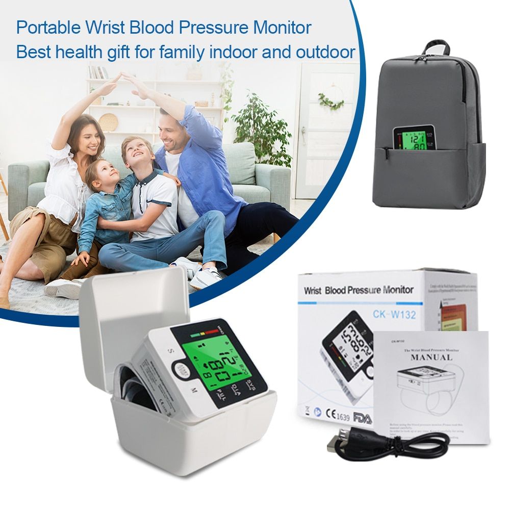 1X Rechargeable Wrist Blood Pressure Monitor Automatic Sphygmomanometer Tonometer Tensiometer Heart Rate Pulse Meter BP Monitor