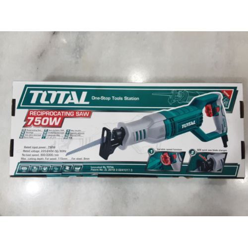 TOTAL is a brand focus on top quality and affordable tools. Unlike other world famous brands such as Boschs, Makita, and Stanley, of high quality but too expensive, our idea of top quality is not only referring to the function, usability, and appearance but also the efficiency, performance, and maintainability. We never do any advertisement on TV, which means we save all unnecessary expense to bring the benefits to customers and make the top quality products cost-effective. All TOTAL team is devoted to making the TOTAL brand to grow into the world-class tools expert.Model Number : TS100802Type : Reciprocating SawsPower Source : Corded ElectricBrand : Total ToolsVoltage :220 - 240V ~ 50/60HzRated Power : 750WNo-load speed 900-3300rpmMax cutting depth:Wood :115mmsteel:8mmaluminum:12mmSDS blade change chuckWith 1pcs metal saw bladeWith 1pcs wood saw blade