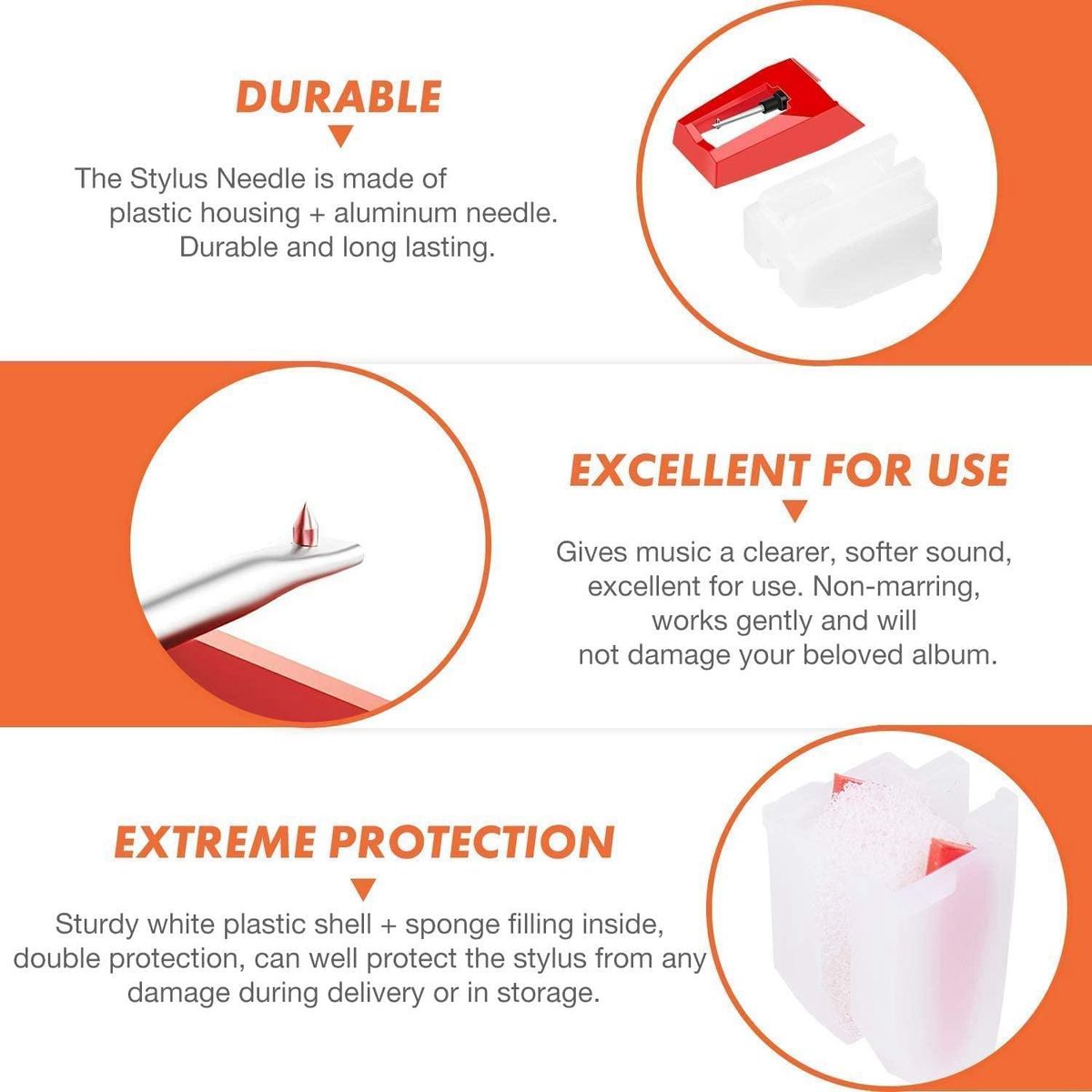 Detailed Information About The Product:[Super Quality Repment s ]Our turntable cartridge and stylus s have high output and excellent durability.Diamond stylus with 4-6 grams forces which give a clearer, smoother stereo sound to the music and will not harm your cherished albums.