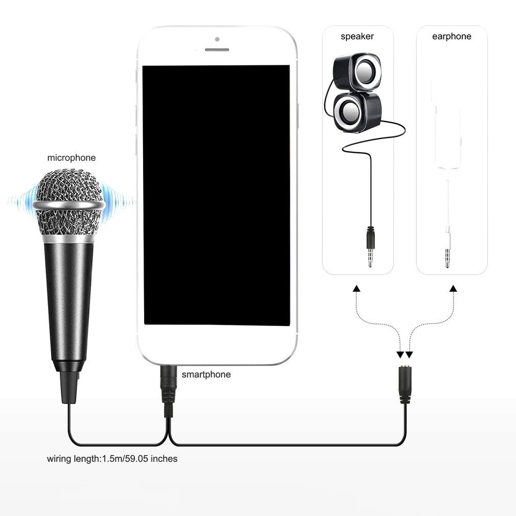 Description: This lovely mini size microphone is lightweight and easy to carry, no need batteries, suits for most cellphones.