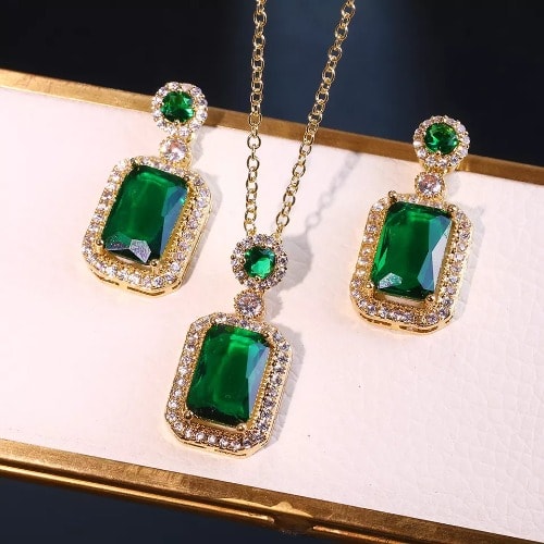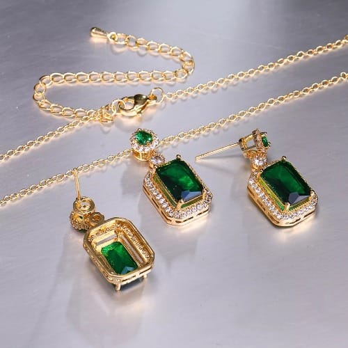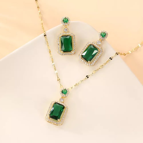 Buy Rectangle Cubic Zirconia Jewelry Set - Green in Nigeria