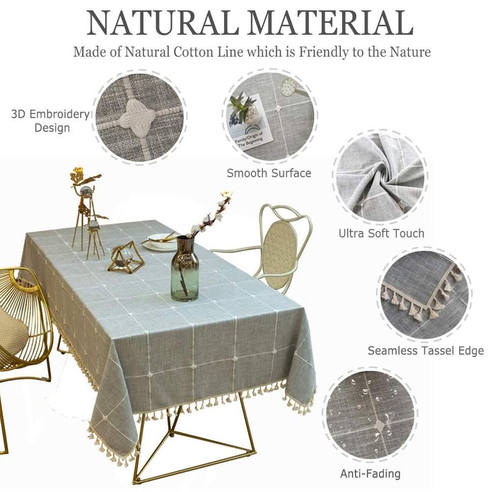 Detailed Information About The Product:[ ANTI-WRINKLE&ANTI-SHRINK ]: tablecloth combines the comfort of cotton and the firming of hemp with the perfect proportion, which is more wrinkle free and shrink-proof than other materials. And the edges sewn finished with a tassel design adding a delicate and elegant beautiful classic style
