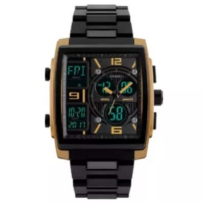 Buy Rectangle Wrist Watch With Year Dual Display - Black With Gold Detail in Nigeria