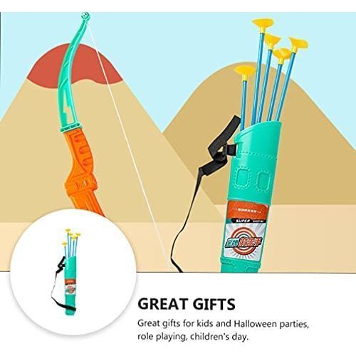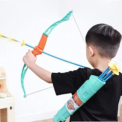 HELP HAND-EYE COORDINATION: Use this bow and game for kids to set new hobbies between boys and girls, which is very suitable for target practice and hand-eye coordination.ABS Plastic: Our bow and play toys are made of high-quality ABS plastic, which is sturdy and durable with long-lasting performance. The powerful suction of them makes it stick firmly to the lens, window or any other smooth surface. Adjustable bow cord helps tighten strings and achieve precise, focused targets.READY TO PLAY - This is a great toy with no limit to the number of times. Children can play in bedrooms, patios, garages, and parks.Easy to Carry and Hold: Based on the ergonomic design, the handle is very comfortable to hold. Portable and easy to carry.Learning and Play Toy: This is a play and learning toy for your kids and grandchildren, our soft shooting and hunting bow and game for kids can be played indoors and outdoors. Packing list: 1 x 5 suction arrow and 1 quiver.