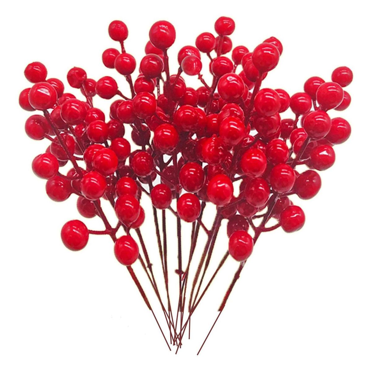 24 pcs red berry branches in a pack,each red berry stem with 14 red berries.The red berry stem length is about 7.9 inch/ 20cm,the red berry diameter is about 0.6 inch/1.5.