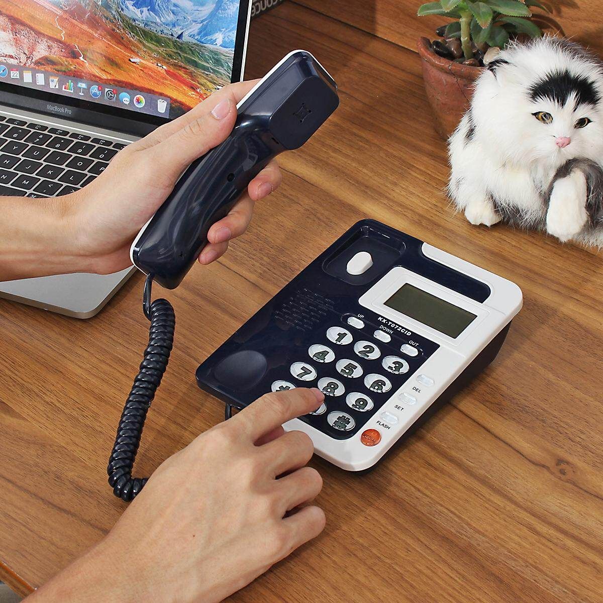 Red Black Blue Home Corded Phone Telephone Business Office Desktop LCD