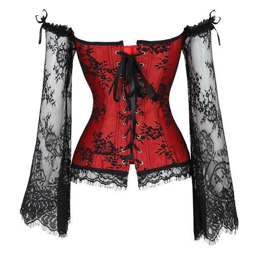 Buy Red Corset Top Waist Shaper Lace Women Steampunk Sexy Long Sleeve Plus Size in Nigeria