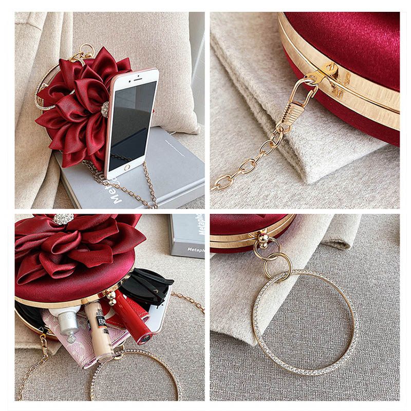 Shape : Minaudiere Handbags Type : Evening Bags Origin : CN(Origin) Main Material : Suede Closure Type : Hasp Hardness : HARD Exterior : Solid Bag Style : Lady Lining Material : Polyester Occasion : party Gender : WOMEN Pattern Type : Solid Number of Handles/Straps : Single Decoration : Diamonds Item Type : Handbags size L:15cm ,W:15cm ,H:5cm.