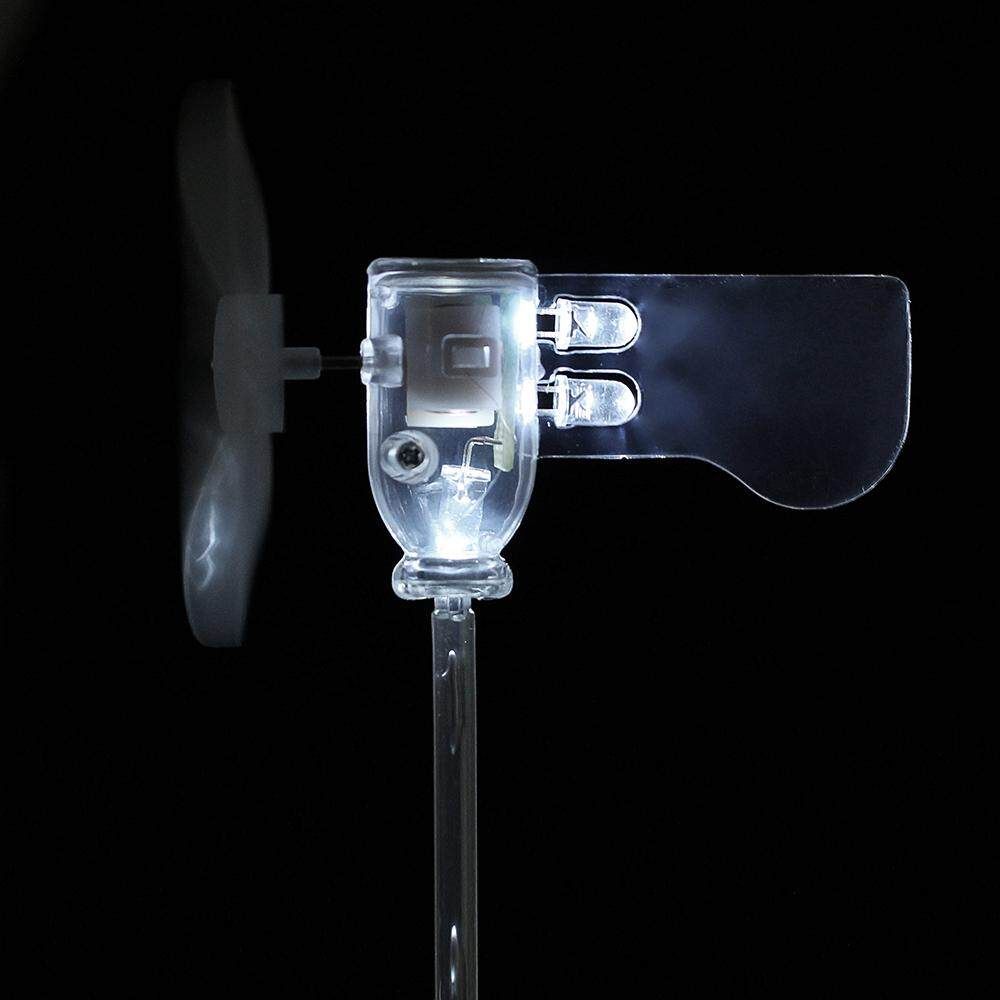 a The world's smallest wind turbines, can turn 360 at any angle, and will automatically face the wind direction b Minor wind turbine LED Tools Teaching Sample Template generation will light the LED d LED low consumption required, Blowing into his mouth or under a fan is enough to get the to light up the LED, which is also can be used as a teaching experiment.