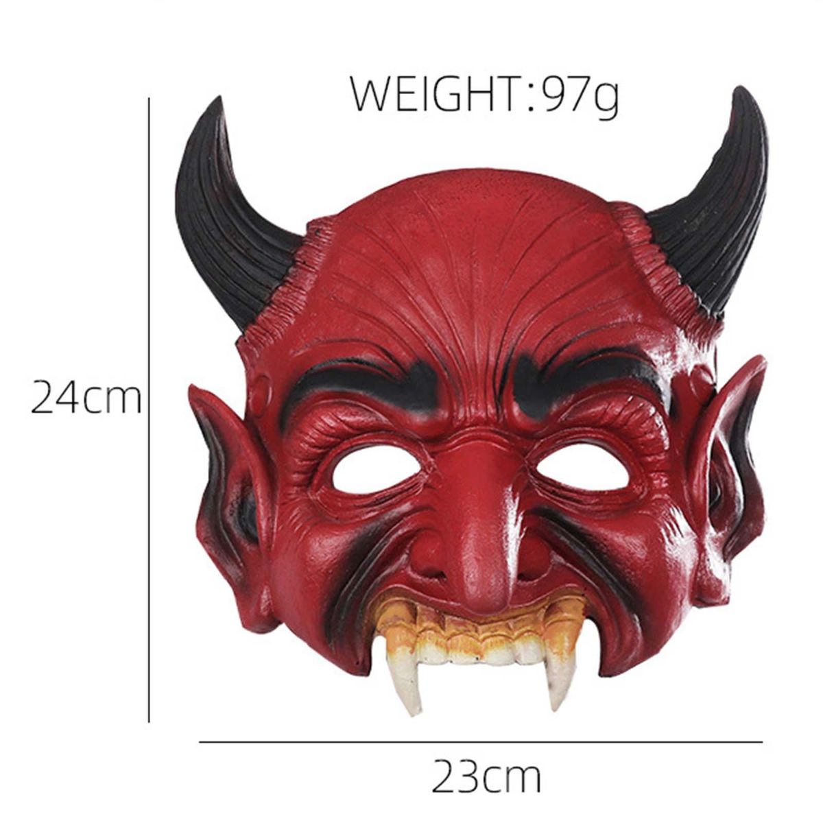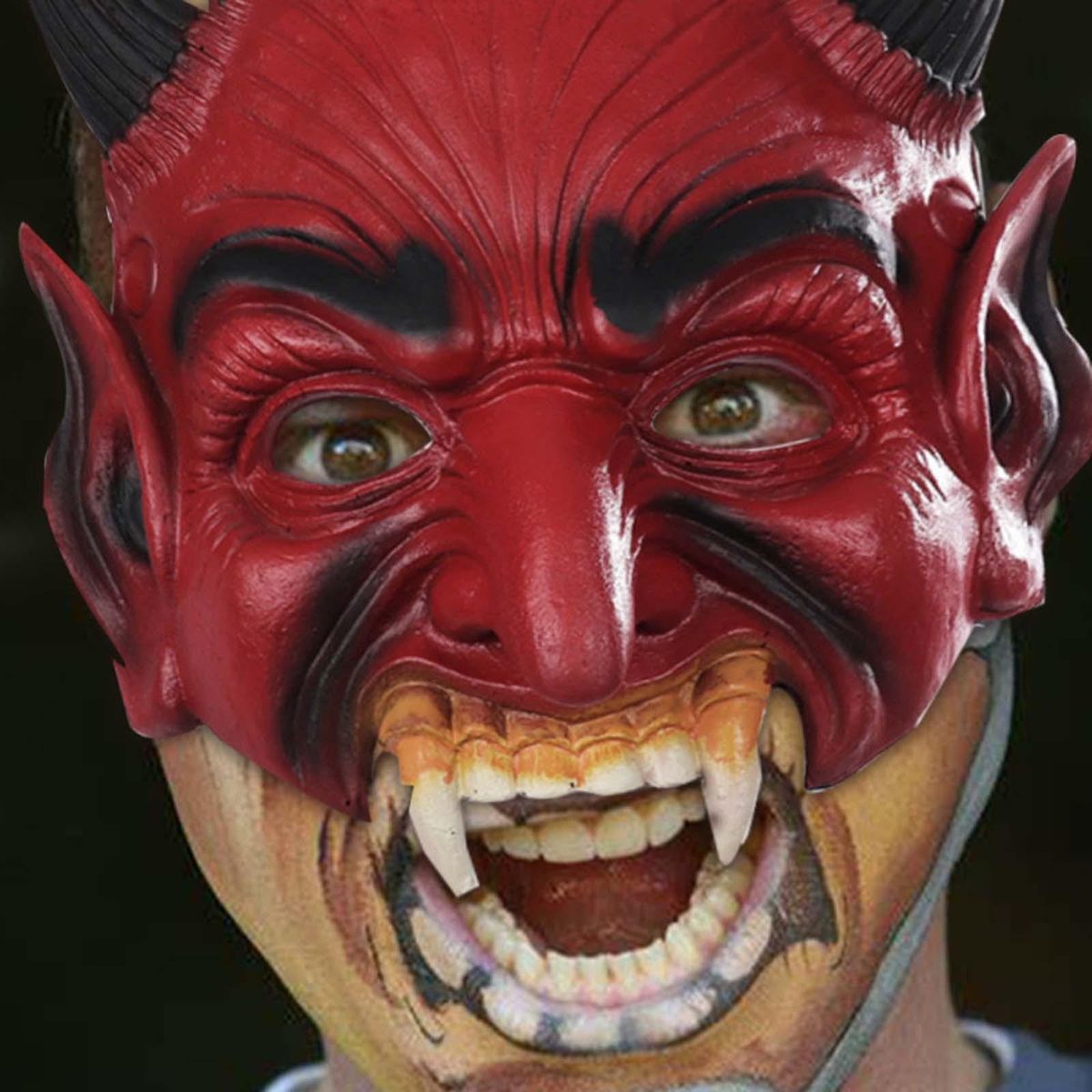 Half : Red devil shape, unique design, perfect for Halloween and cosplay, add scary and lively atmosphere.Material: Made of high quality PU material, delicate details, suitable for most people, charming and mysterious.Halloween Costume Accessories: Widely used for occasions, masquerade, theatrical stage, carnival, bar, gift, etc.Makeup Costume Props: Suitable for Halloween, dance, parties, cosplay costume parties, movie props, etc.Gift: Universal, suitable for boys, girls, children, and adults. The perfect gift for friends.