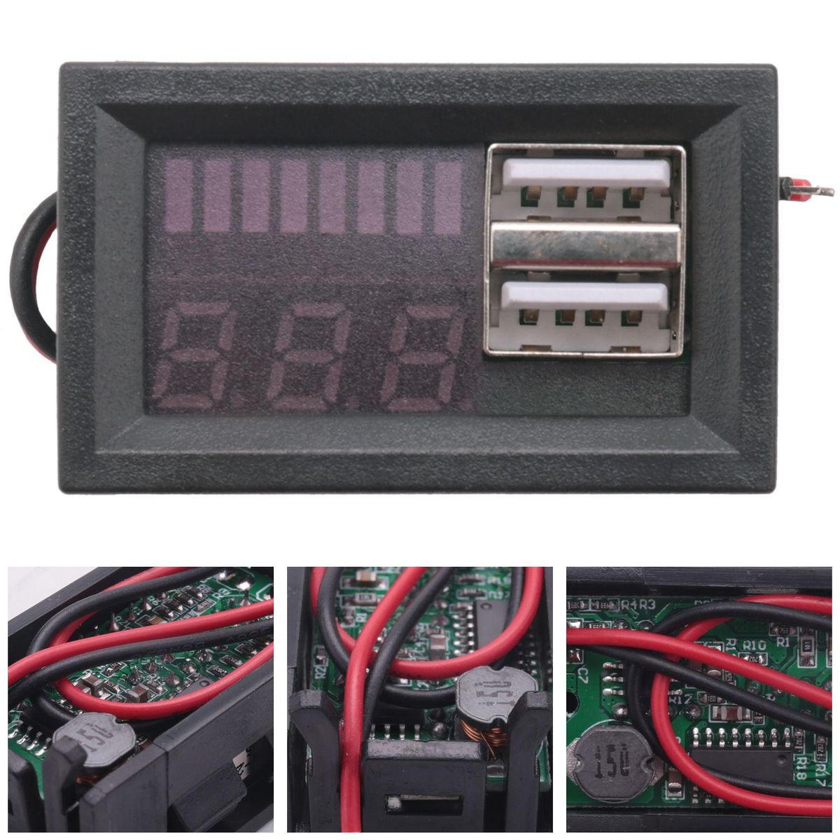 Red Led Digital Display Voltmeter for Vehicles Outputthis product is fully functional, you can display the battery voltage, battery power, you can also plug directly into the phone or other 5V equipment charging.