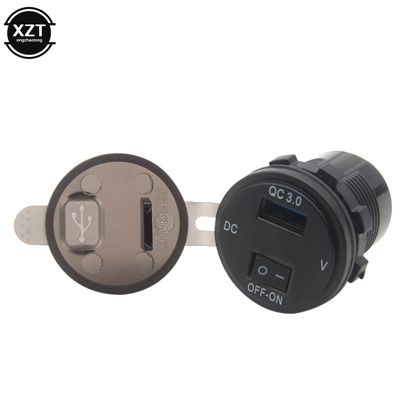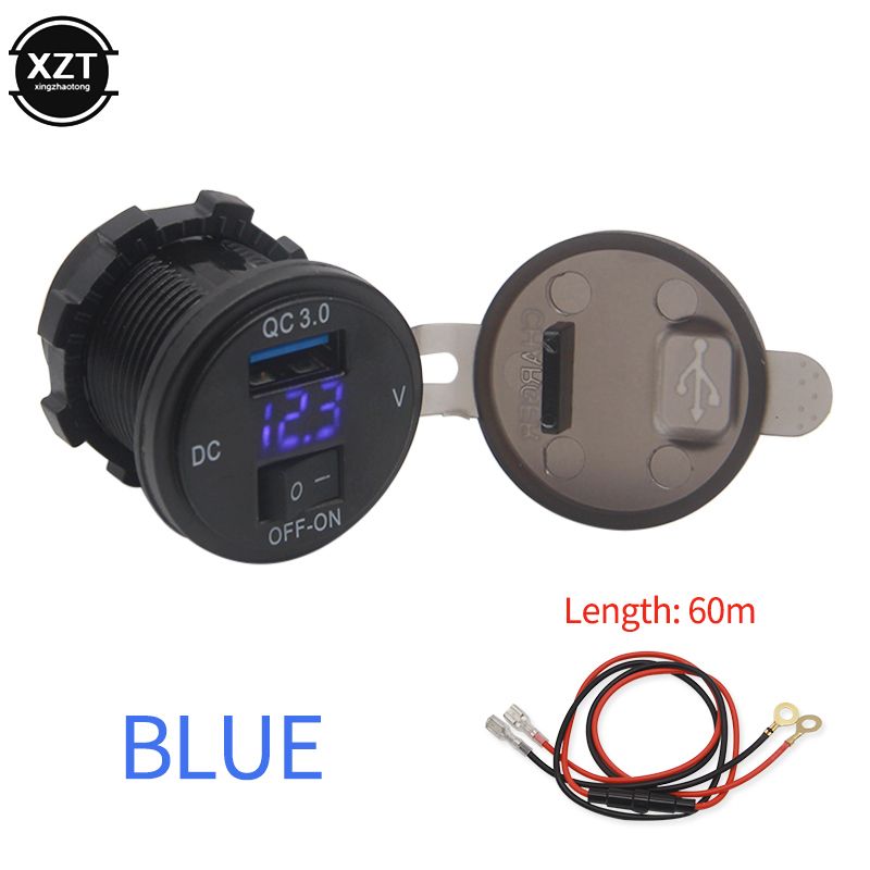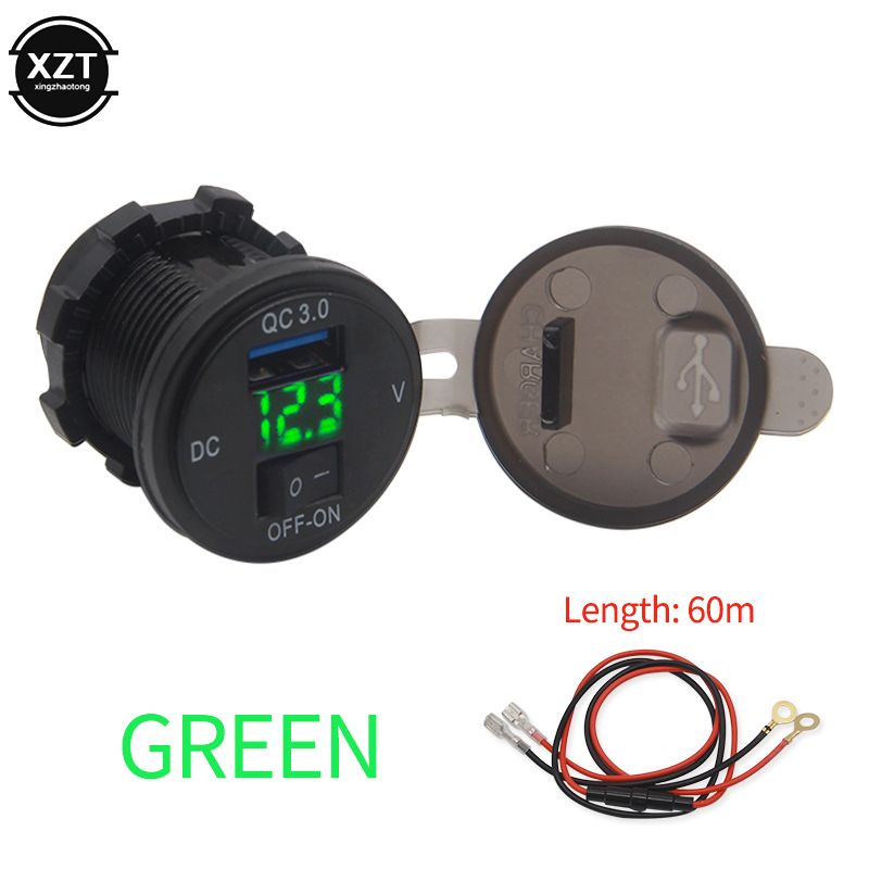 18W Phone USB QC 3.0 Fast Charging Motor Power Adapter with Switch LED Voltmeter Voltage Display Vehicle DC12V-24V Waterproof