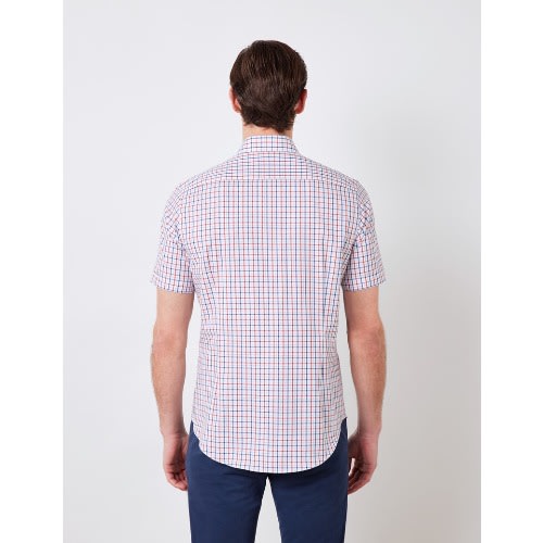 Easy Iron Blue & Yellow Multi Check Slim Fit Short Sleeve Shirt