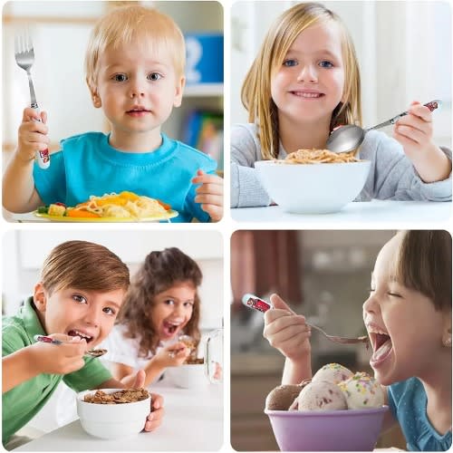 Descriptions; This spoon and fork set adds a touch of finesse and class to your kids dinning table. Suitable for school, home, festive periods like Valentine, Birthdays, Christmas, and any other festive occasions.The colour adds beauty to your dishware and gives your kids the feeling of being a celebrity.Blow the minds of of your kids and make them feel like Kings and Queens, It will also encourage kids to feed themselves and eat well.