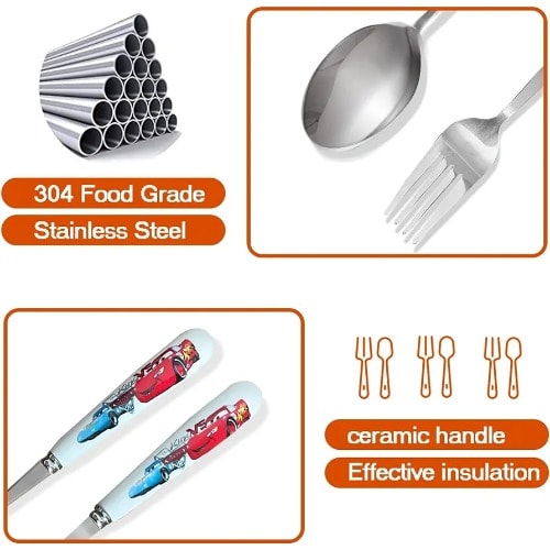 Easy hold: The product has been designed in such a way as to provide your kid a good grip over the spoon/fork while using it.It is also hygienic and bacteria resistant dishwasher safe. Can be treated as normal cutlery.