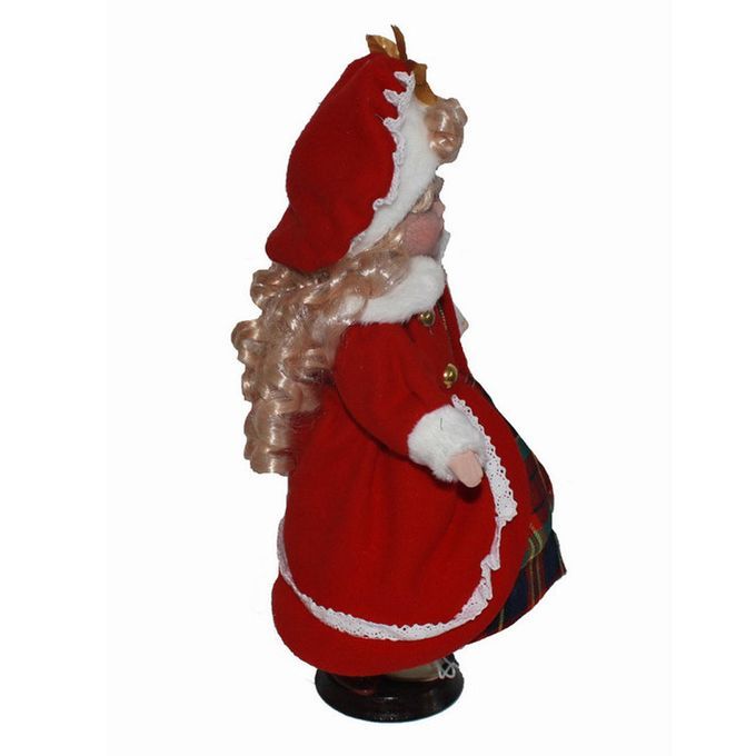 Lovely handicraft girl dolls wearing red plaid dress coat suit with gold curly hair, shoes and display stand