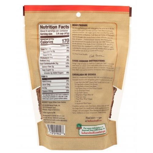 Our red quinoa has been thoroughly rinsed and air dried to remove the naturally occurring bitter saponins. Looking for more? Browse our organic white quinoa grain and our organic tri-color quinoa, a mixture of white, red and black quinoa. We also offer organic quinoa flour for incredible baked goods, tortillas and more.