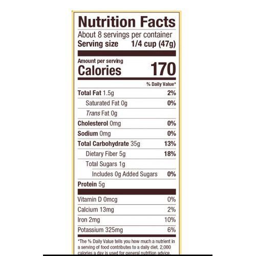 Usda Certified Organic; Gluten Free; Vegan; Vegetarian; 100% Whole grain; High in fiber; Kosher Pareve