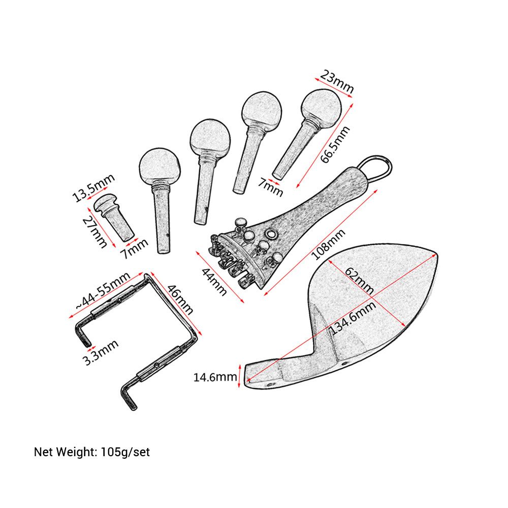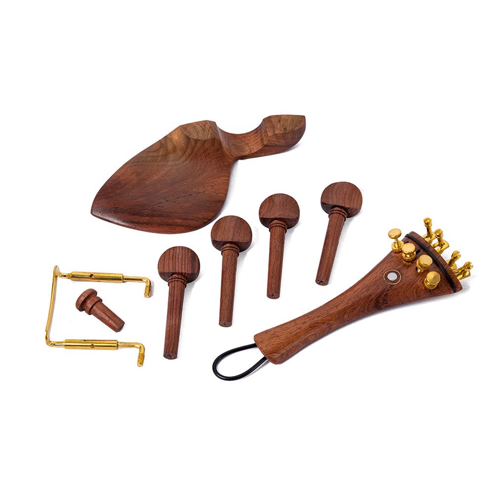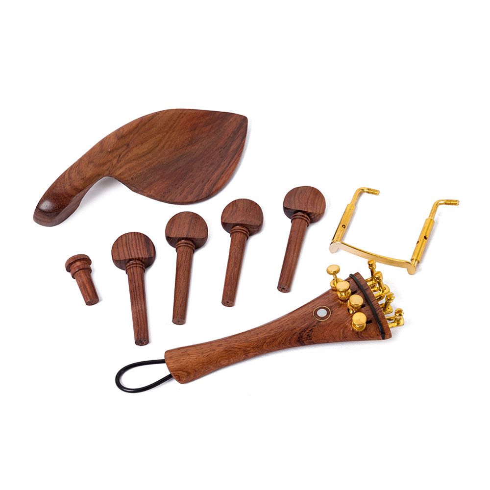 1 set of new natural solid wood (main material) violin accessories, including 4 pegs, 4 fine gold tuners, 1 tailpiece, 1 chin rest, 1 chin rest clamp, 1 end pin and 1 tail gut.