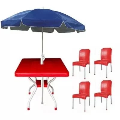 Buy Red Square Table With 4 Aluminium Curved Legs Chairs & Blue 60" Wide Double Cloth Beach in Nigeria