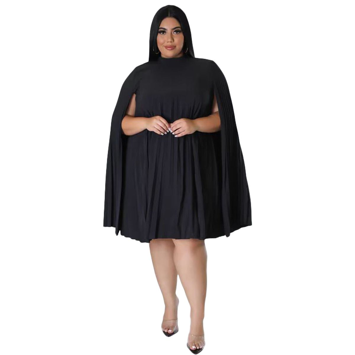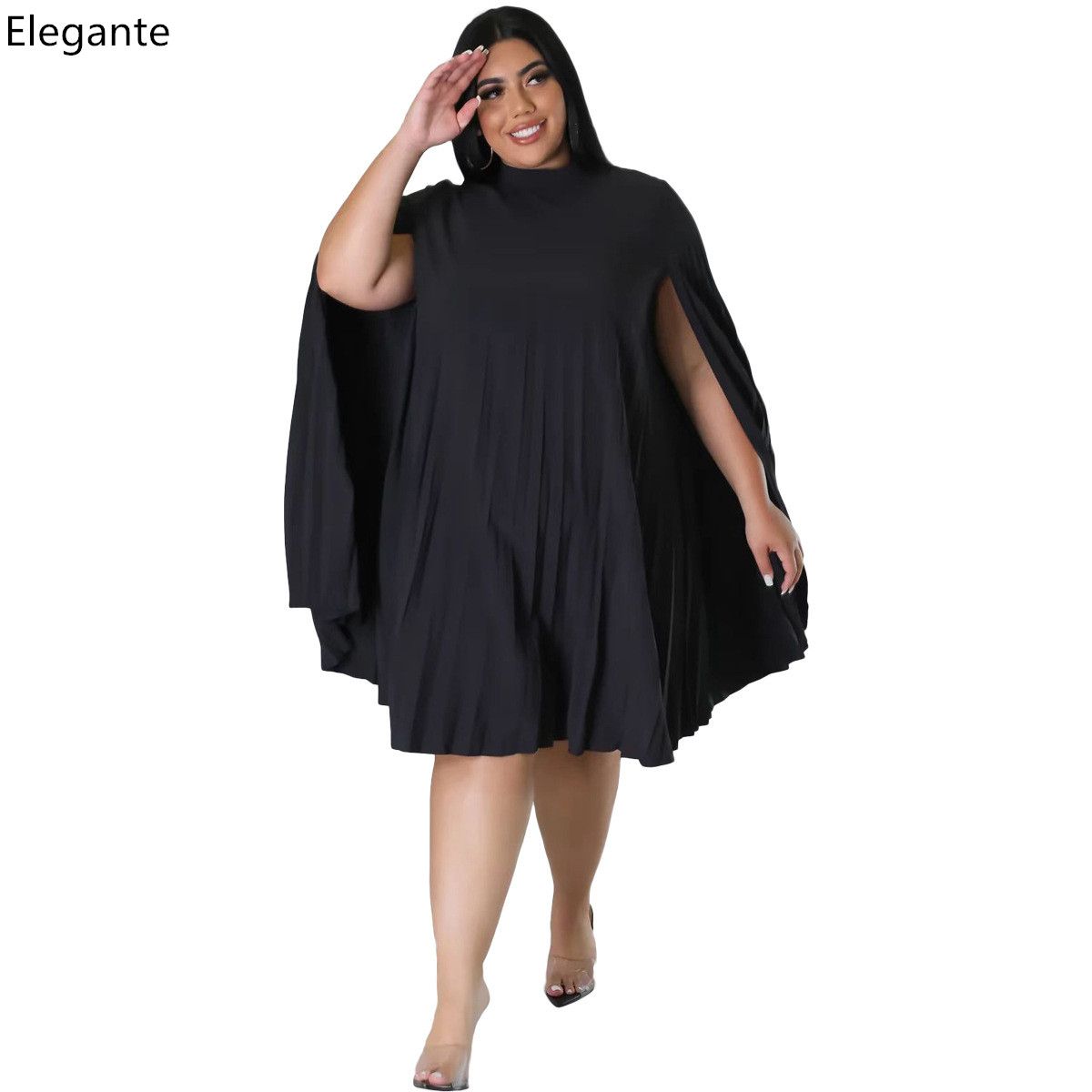 1X New Arrivals Autumn Women Party Dress Plus Size Gowns 4XL 5XL Fashion Cape Round Collar Elegant Ladies Casual Pleats Dresses