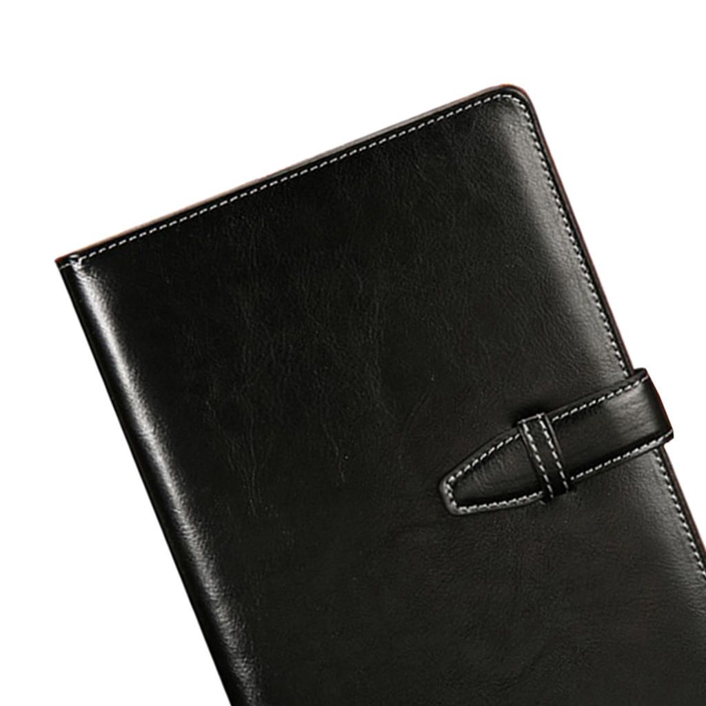 PU leather cover with insert buckle design , convenient to open and close the notebook .