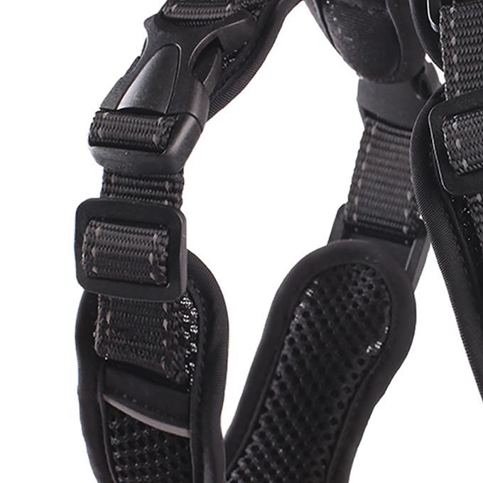 The harness adopts adjustable design, the chest and neck is adjustable, that is suitable for pets of small sizes and comfortable for pet to wear.