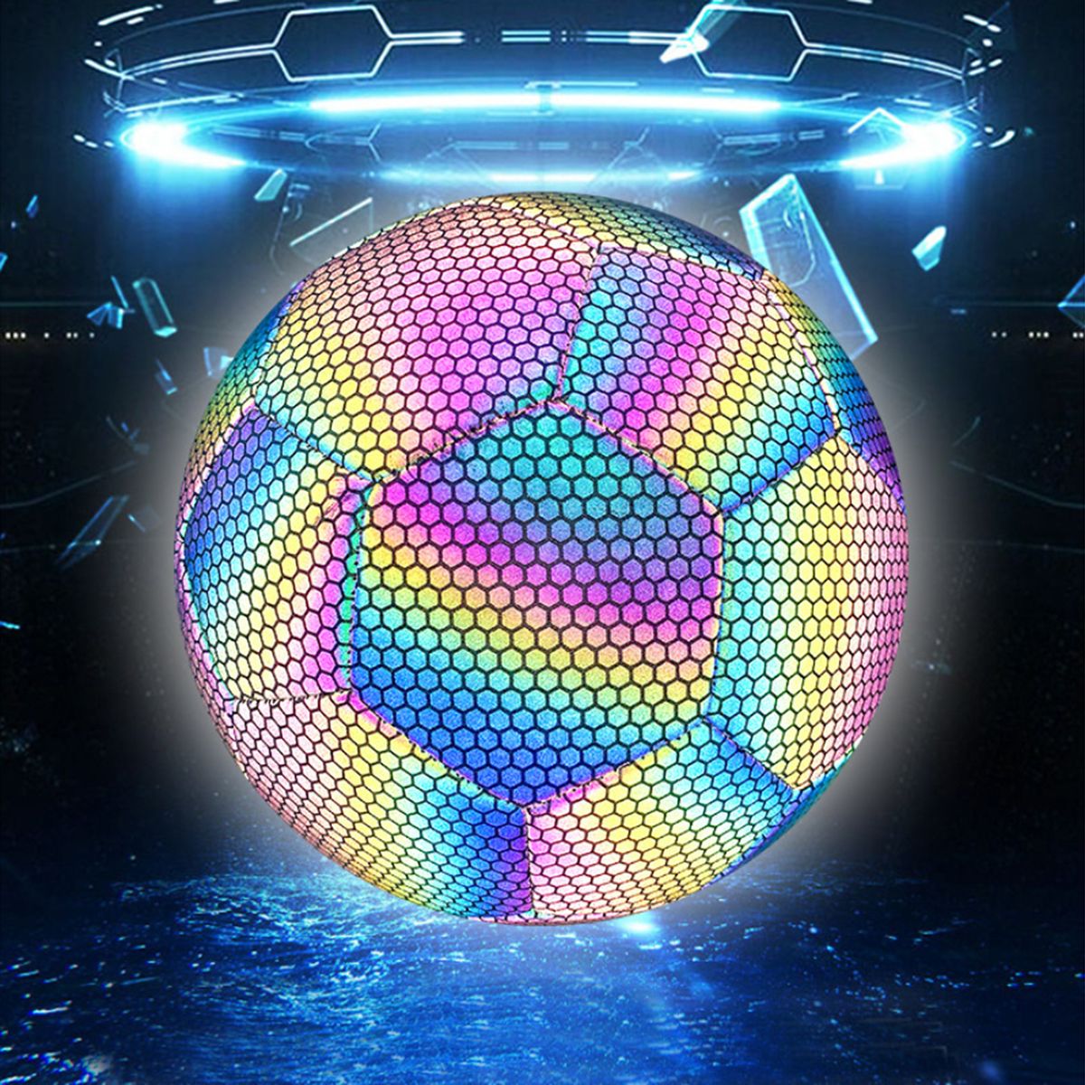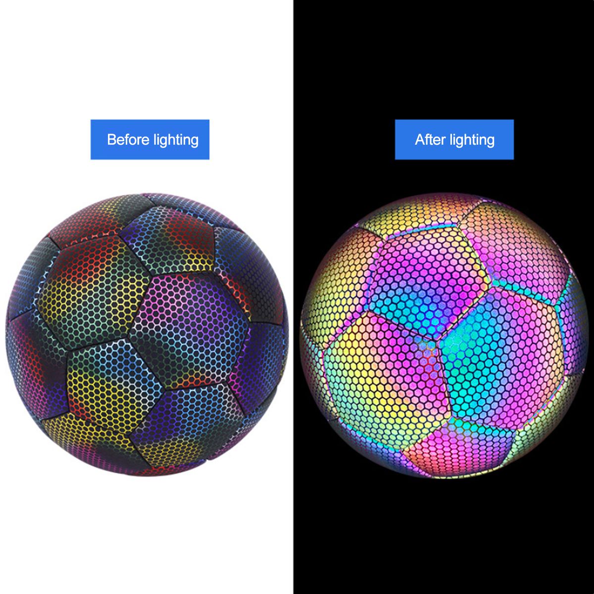 Reflective football, need flash lamp to take photo or video.