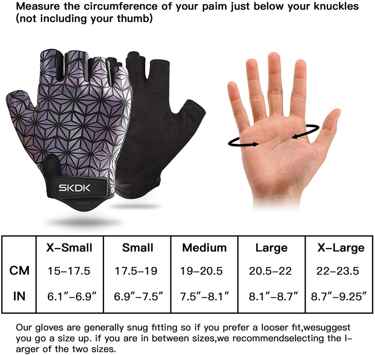 To choose the more suitable size, please kindly measure the palm width of your hands (as the picture show), then make a choice comping with the chart beside.Our gloves are generally snug-fitting. If you're between sizes, we recommend that you choose the larger of two.If you prefer looser fitting gloves, buy one size larger.Attention: