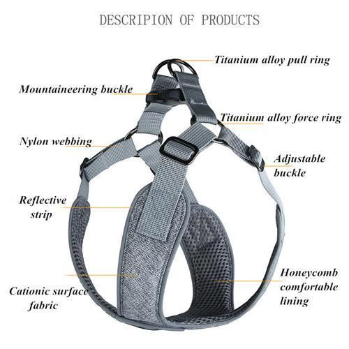 2.Reflective strips on edges of the harness,which make the harness highly visable at night.