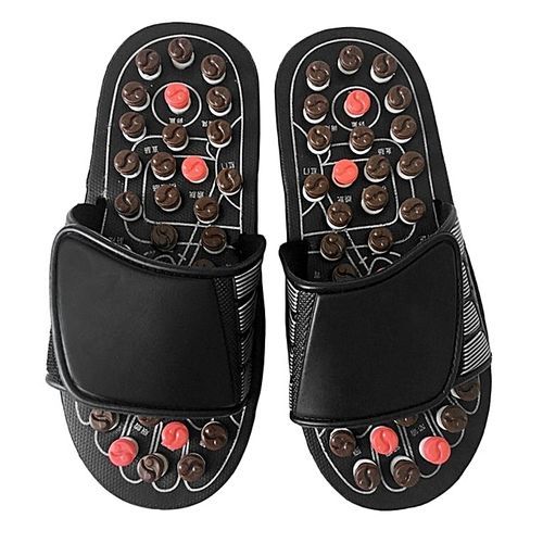 EUR Size: 37-39 40-41 42-43The Foot Reflex Slippers facilitate a deep overall relaxation of the body. Utilizes traditional Chinese acupuncture treatment to improve your health. Slippers has 82 massaging tips to stimulate different acupuncture points when walking. Stimulates and revitalizes your body with just 15 minutes of daily use. Made from high-quality rubber and textured plastic to ensure durability and effectiveness.US Size: 5.5-6.5 7-7.5 8-8.5