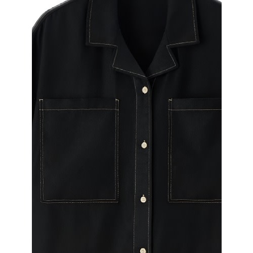 Relaxed Fit Short Sleeve Shirt Camp Collar With Chest Patch