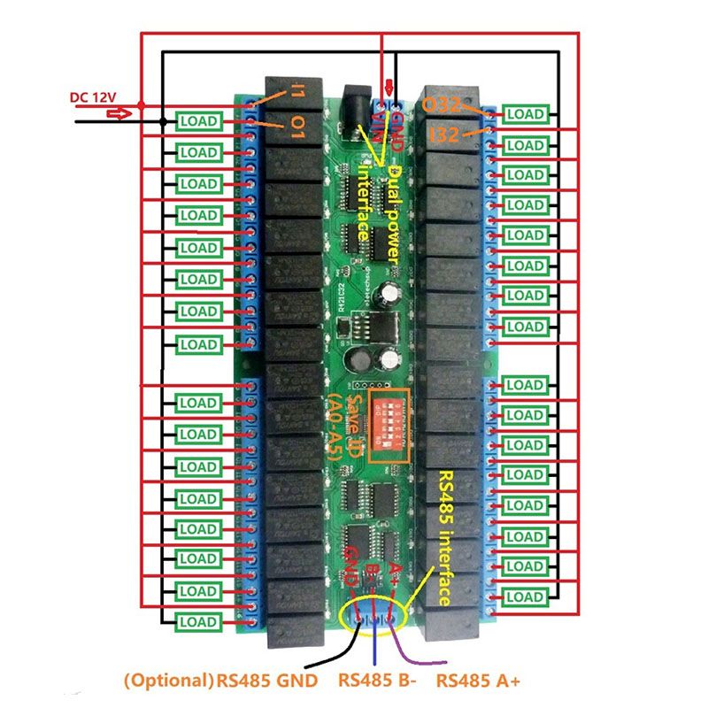 2. Working current: standby 8MA, 32 relays are open 1.15A
