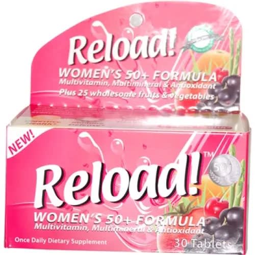 It becomes more difficult to maintain good health and vitality, as well as to ward off environmental stressors. Reload! Women & rsquo;s 50+ Formula is a complete supplement that fortifies a nutritious diet and active lifestyle, and is specifically designed to reinforce complete health in women over 50. Reload! Women & rsquo;s 50+ Formula combines a full spectrum of essential vitamins, minerals, antioxidants, as well as 25 wholesome fruits and vegetables to address a 50+ woman & rsquo;s every health need. In addition to boosting immunity and increasing energy, this premium formula utilizes cranberry fruit for urinary tract health, Lutein for eye health, and Alpha Lipoic acid, Lycopene and Resveratrol for additional antioxidant, anti-aging and cardiovascular protection. Combined with a healthy diet and active lifestyle, once-daily Reload! Women & rsquo;s 50+ Formula helps women achieve excellent overall health and vitality.