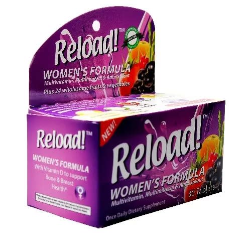It becomes more difficult to maintain good health and vitality, as well as to ward off environmental stressors. Reload! Women & rsquo;s 50+ Formula is a complete supplement that fortifies a nutritious diet and active lifestyle, and is specifically designed to reinforce complete health in women over 50. Reload! Women & rsquo;s 50+ Formula combines a full spectrum of essential vitamins, minerals, antioxidants, as well as 25 wholesome fruits and vegetables to address a 50+ woman & rsquo;s every health need. In addition to boosting immunity and increasing energy, this premium formula utilizes cranberry fruit for urinary tract health, Lutein for eye health, and Alpha Lipoic acid, Lycopene and Resveratrol for additional antioxidant, anti-aging and cardiovascular protection. Combined with a healthy diet and active lifestyle, once-daily Reload! Women & rsquo;s 50+ Formula helps women achieve excellent overall health and vitality.