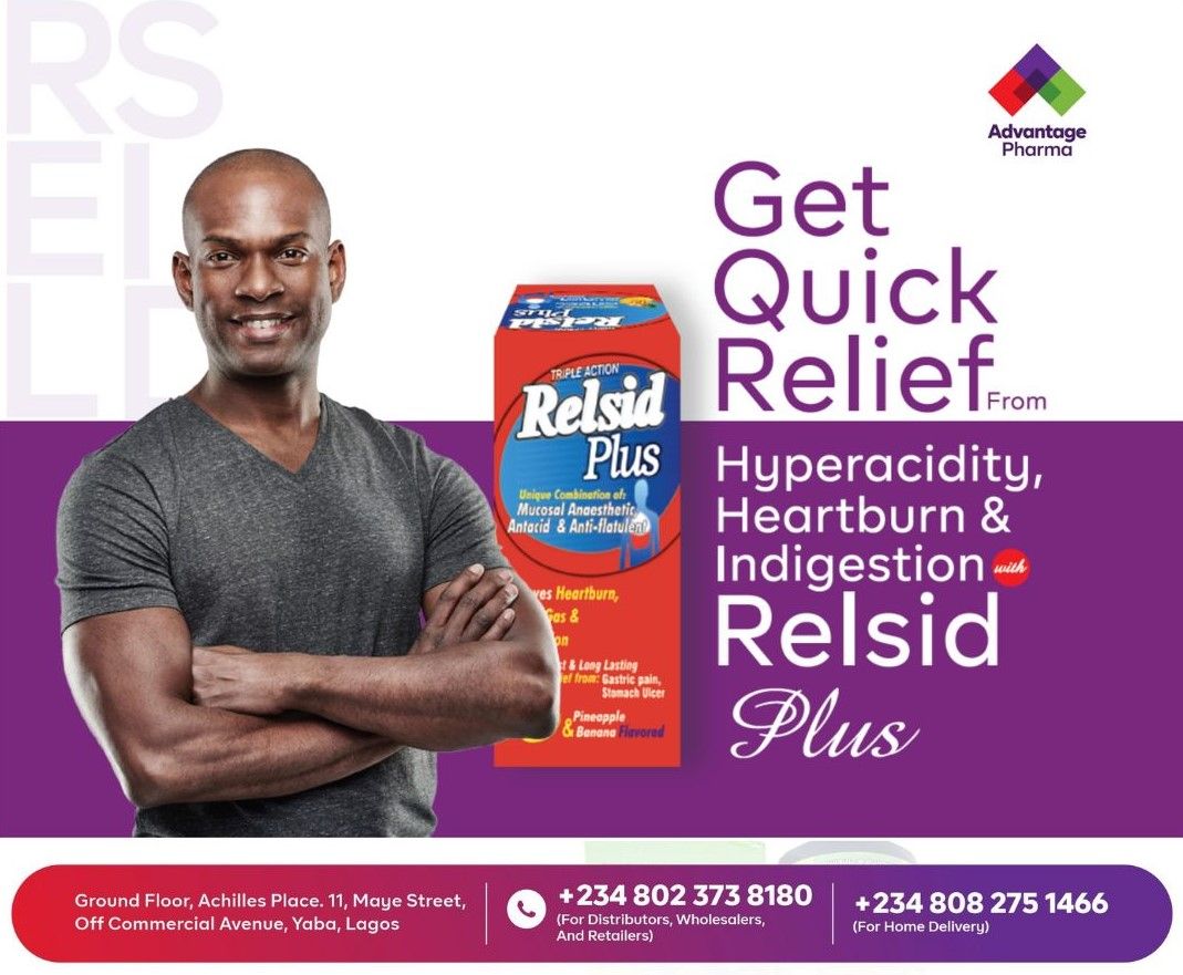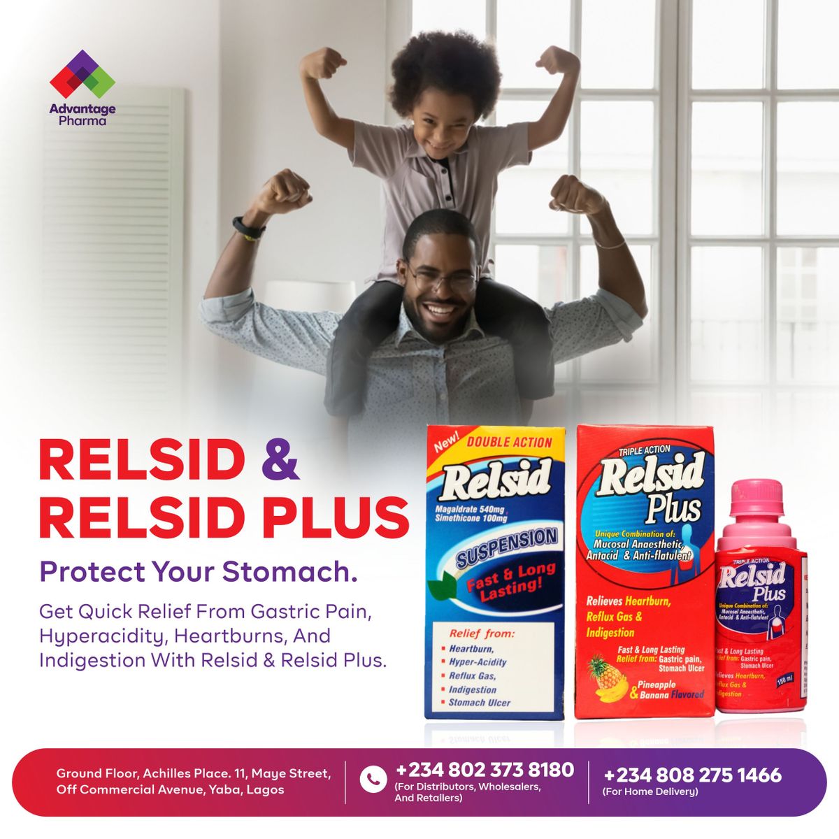 Do you have lingering painful stomach ulcer and gastric pain, and you have tried all sorts of medication for relief, with little to no results? Relsid Plus is a triple action antacid that cools the Tummy and provides rapid relief from all forms of gastric pain in less than five minutes. Don't suffer that ulcer pain anymore; knockout it out today with Relsid Plus.