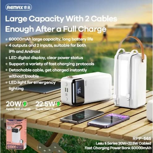 Buy Remax Rpp-565 Lesu Ll Series 20w+22.5w Cabledfast Charging 60000mah Power Bank (white) in Nigeria
