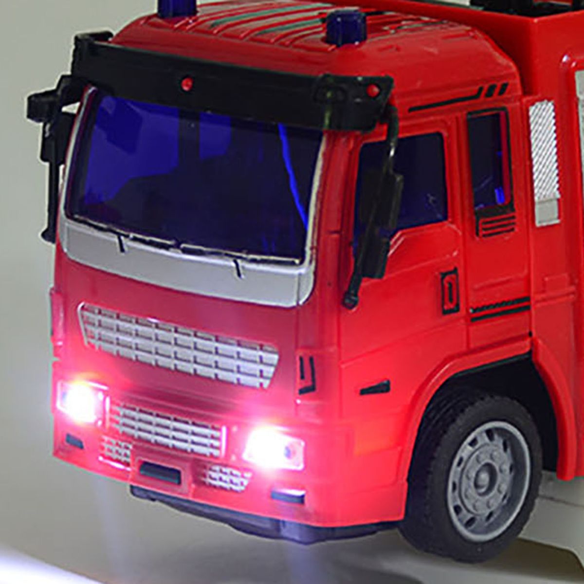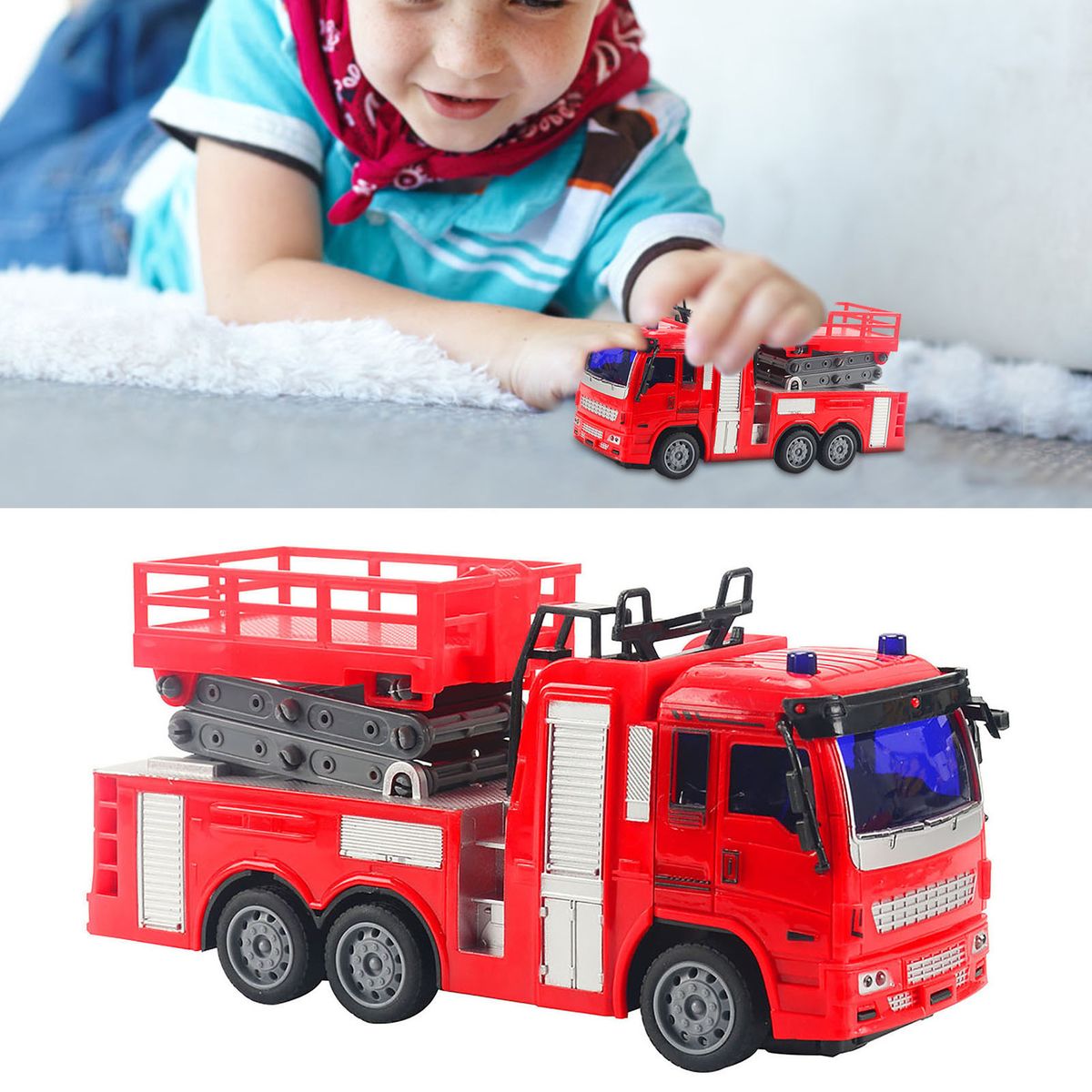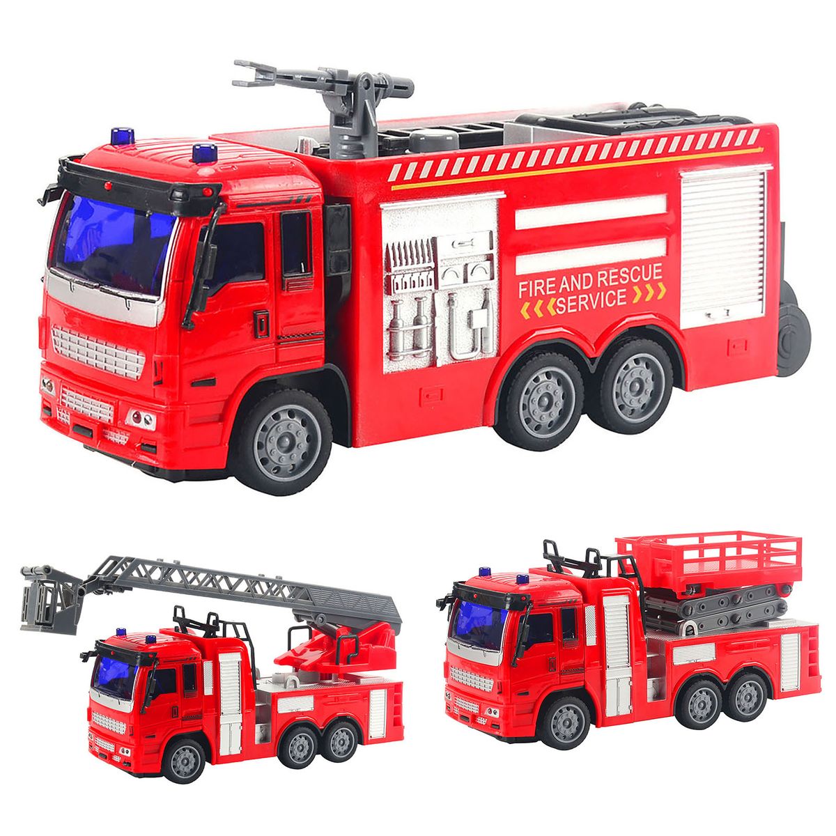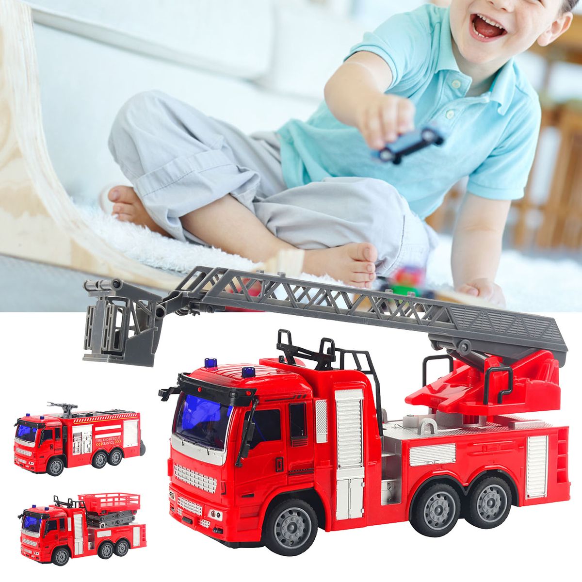The fire truck is equipped with a ladder, the lifting platform of the lifting trolley can be raised and lowered, and the water spraying platform of the water spray truck can be rotated, these simulated designs will make children very like.