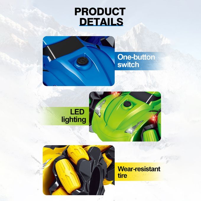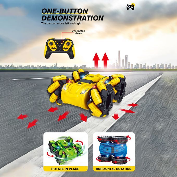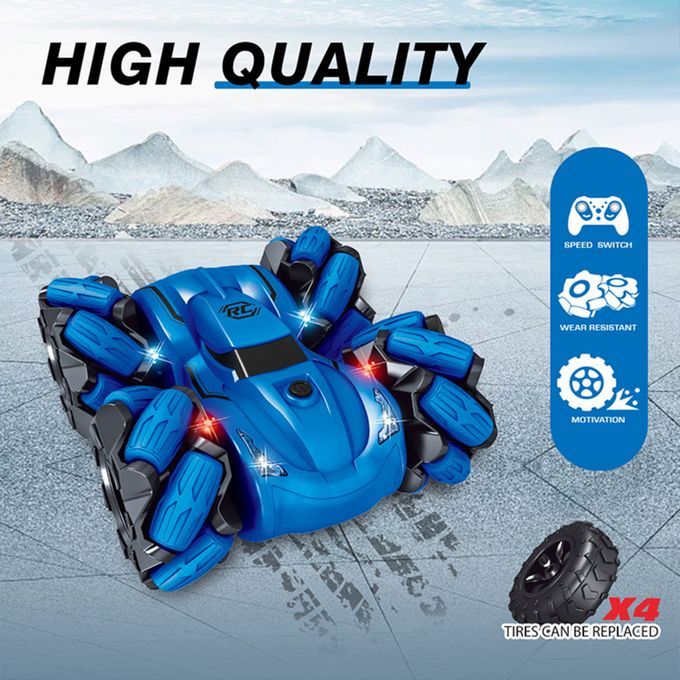High speed drift sidetrack stunt automobile, threadless remote control to control, one-button demonstration, rotate in place, horizaontal rotation, the wheel is combined by 7 slidable small wheels, transverse tire, innovation wheel design grip strength, various terrain is easy to drive, mountain road, desert, indoor.