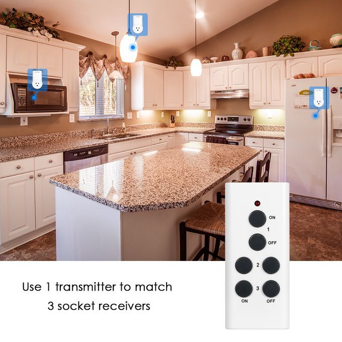 Three socket receivers and one remote control transmitter, easy to use and operate, making it more convenient to help you control household appliances. Energy saving, no need to plug in and unplug your electric appliances every time you use them.