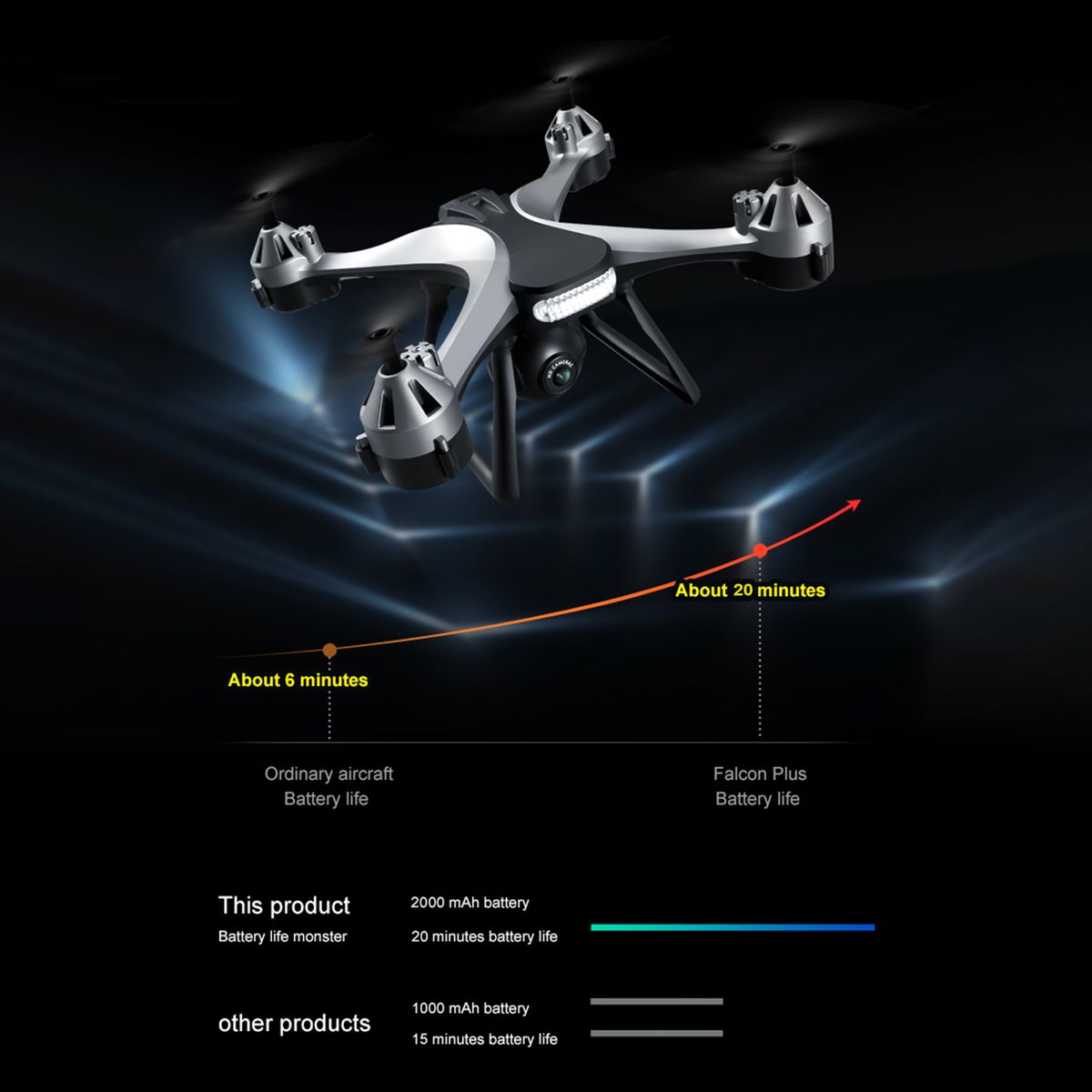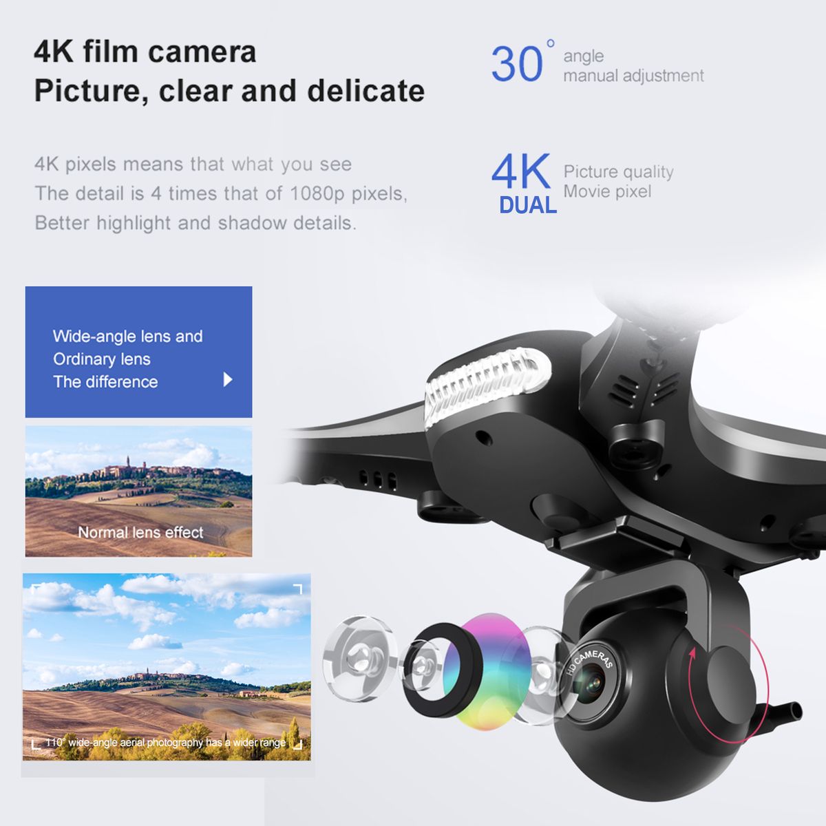 4K Dual Camera: Equipped with 4K cameras, capture amazing pictures and videos from the sky, let you see what your sees, ideal for filming a designated spot or simply to look around. The design of dual cameras makes the shooting work more amazing.