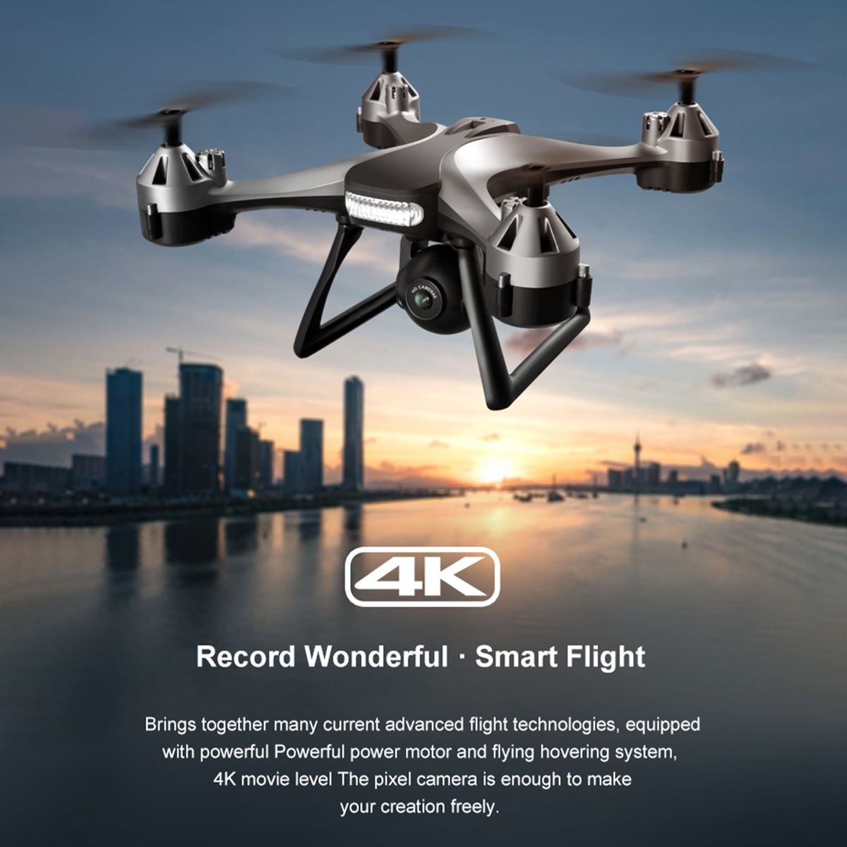 It is characteristic of some functions like gesture control, headless mode and so on. The remote control with 4K high-definition camera.