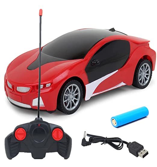 Remote controlled car with flashing 3D lightsIt will make your child busy in playing with this toy. Recommended for ages 3 years and aboveMulti featured remote with forward and backward buttons functionality. Strong sculpted lines and bold design gives this car an exotic appearance.Durable plastic with no sharp edgeRemote Control Famous Car with attractive 3D LightsWireless Remote ControlScale- 1:22 / 27 MHZ 2 AA batteries for remote ( not included due to safety reasons )