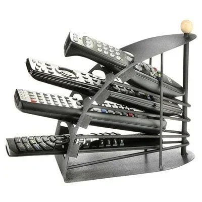 SuperConvenient: The curved, fan-like design keeps all 4 slots arranged so that the remotes you store inside will be easy to see and easy to reach.; ; Remote control organizer rack featuring a convenient curved shape and a sleek black finish. Built to fit any type of remote control including TV Remotes, Stereo Remotes, Soundbar Remotes, Game Console Media Remotes and more.; ; Widely Application: Great for table, restroom, dining room, living room, study room, bedroom, kitchen, cafe.