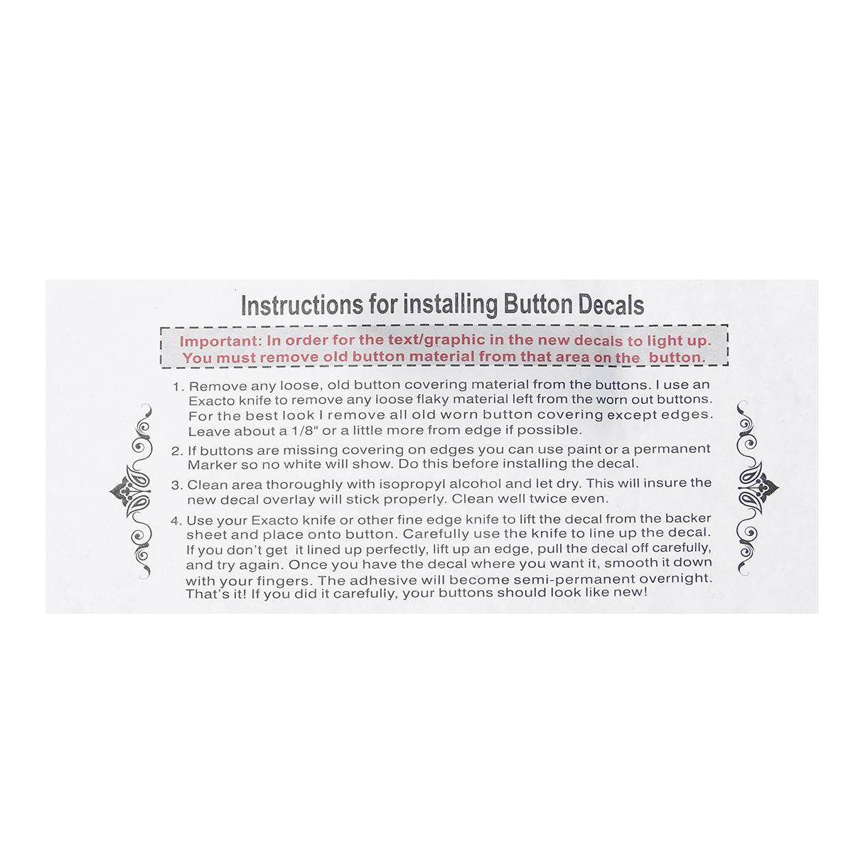 -These overlays will adhere to the factory acrylic button, and with proper installation it's guaranteed against sun fade and pealing.