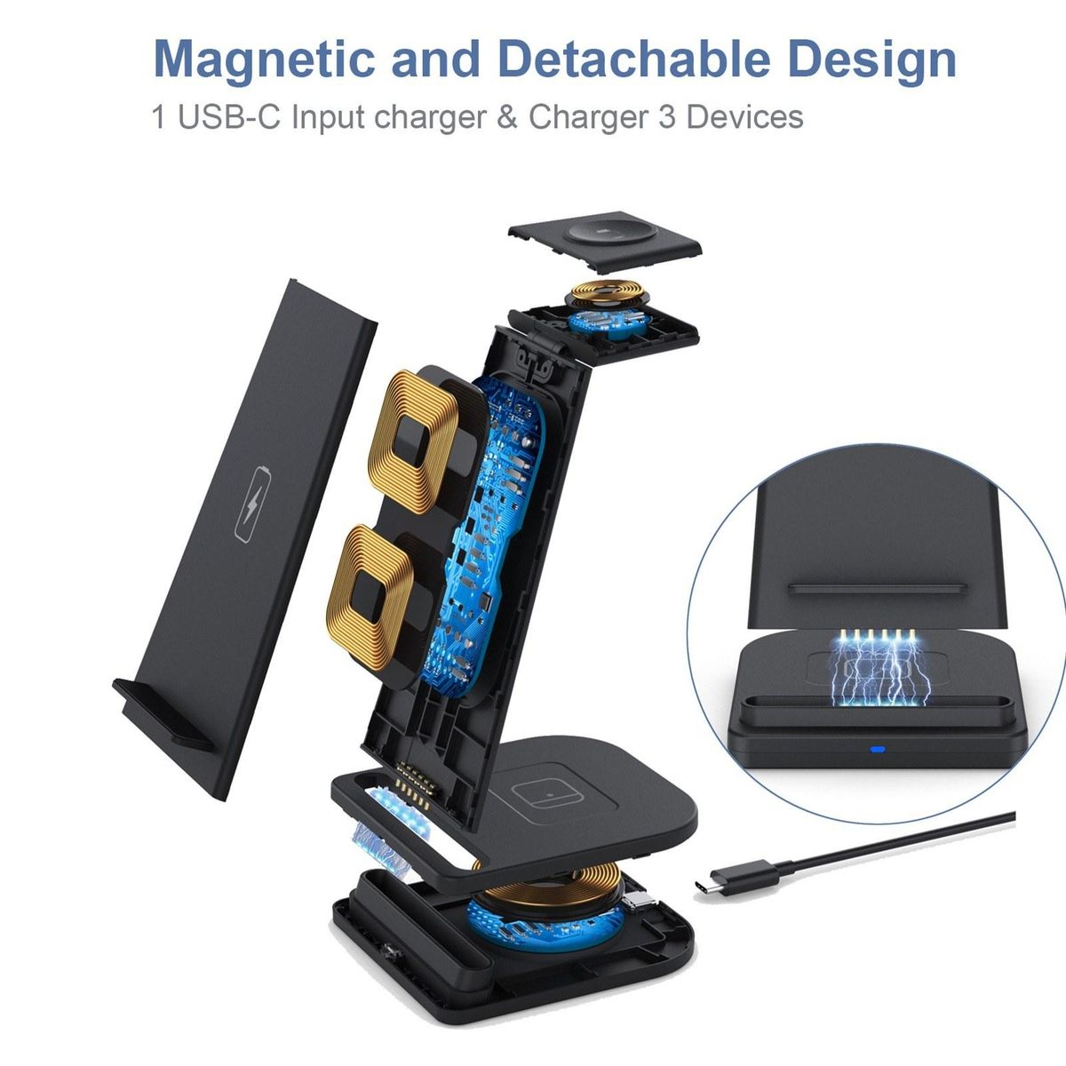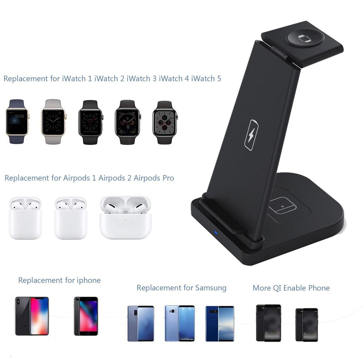 Buy Replacement for iPhone12 11 X XR XS Samsung Galaxy S9 S8 iWatch 5 4 3 2 1 Airpods Wireless Charger Stand 3 in 1 Qi-Certified Fast Wireless Charging Station in Nigeria