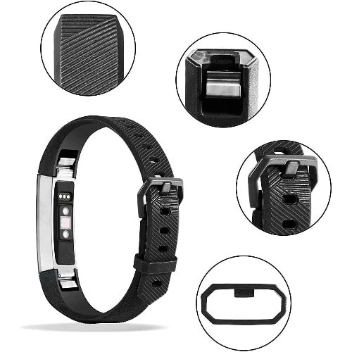 Available Color: Black Buckle Design: Stainless Steel Buckle , Screwdriver Plastic Triangle tool is easy to assemble and resize, holds your band securely in place and a strap holder to secure the extra length