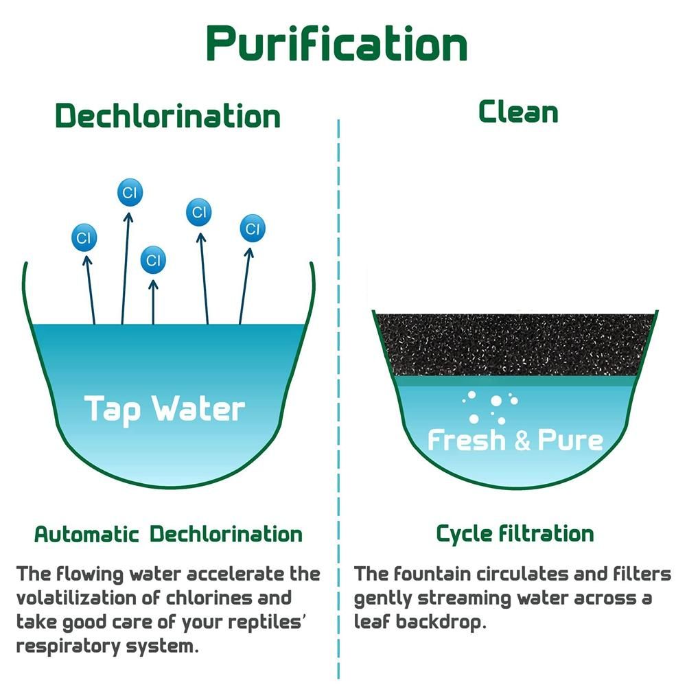 Durable:Reptile Waterfall Drinking Fountain is made of food-grade plastic, sturdy and durable. And the smooth edges of the Reptile Waterfall Drinking Fountain will not hurt your pet at all.