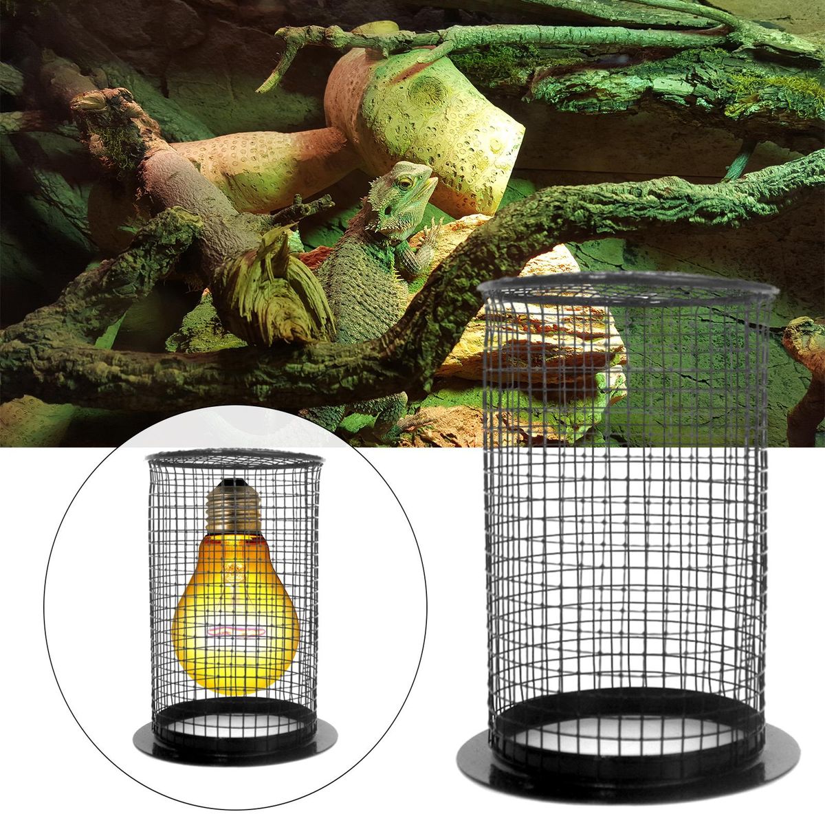 Mesh lampshade made from high grade material, strong enough to guarantee years of usageReptilesand amphibians are more likely to approach to heat source, the metal lampshade can protect your turtles, lizards and other crawling pets from high temperature lamp surfaceWith spring design, easy for installation, just clip and goThe round lamp cover measures approx. 5.9”x3.74”(H*W)Suitable for all kinds reptile lamps, such as heating lamp, ceramic light bulb, spotlight, basking light, etc.